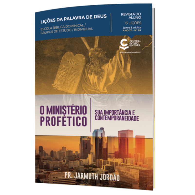 Não é verdade, como pensam alguns, que a profecia bíblica é um agente distrator, cuja função principal é afastar a Igreja de sua genuína missão; muito ao contrário, em essência, a profecia bíblica é o mais poderoso testemunho da divindade de Cristo; e todas, igualmente, apontam para o autor e consumador da nossa fé. Nesta revista, Pr. Jarmuth Jordão destaca a importância e a contemporaneidade das profecias bíblicas. Ao longo das lições, alunos e professores poderão discutir, dentre outros assuntos, sobre: as origens do profetismo; a identidade profética; o chamado profético; a evolução do profetismo bíblico; a comunicação de Deus com o profeta; a pregação e a doutrina profética; o perigo dos falsos profetas; as profecias messiânicas; o poder da voz profética; o profetismo como gênero literário; o profeta Jesus; o ministério profético na nova aliança; e a contemporaneidade da profecia. Resta-nos, portanto, uma derradeira e retórica pergunta: por que, afinal, uma grande parte da Escritura é dedicada a esse tema? Possivelmente, há muitas razões, mas, a principal delas é esta: direcionar a atenção dos homens ao Salvador eterno.