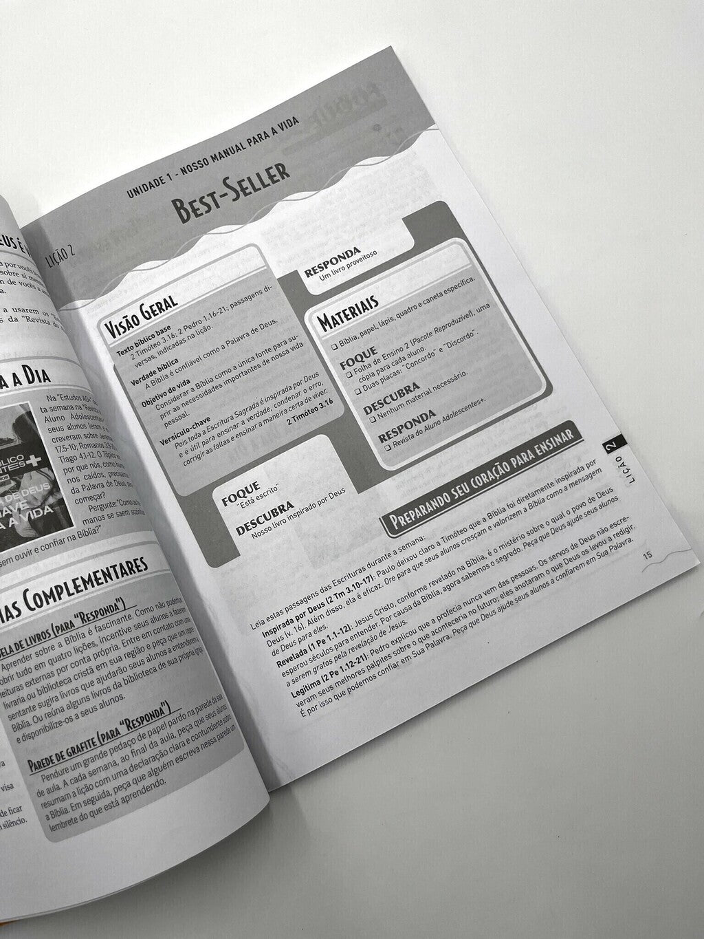 - Devocional semanal para o professor, visando à preparação espiritual para a aula.